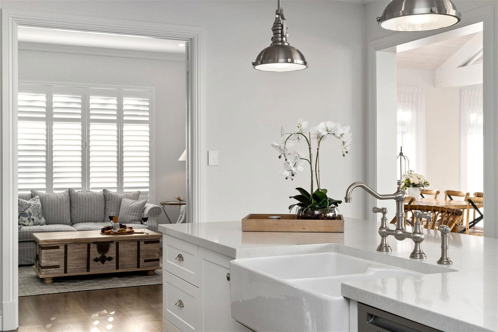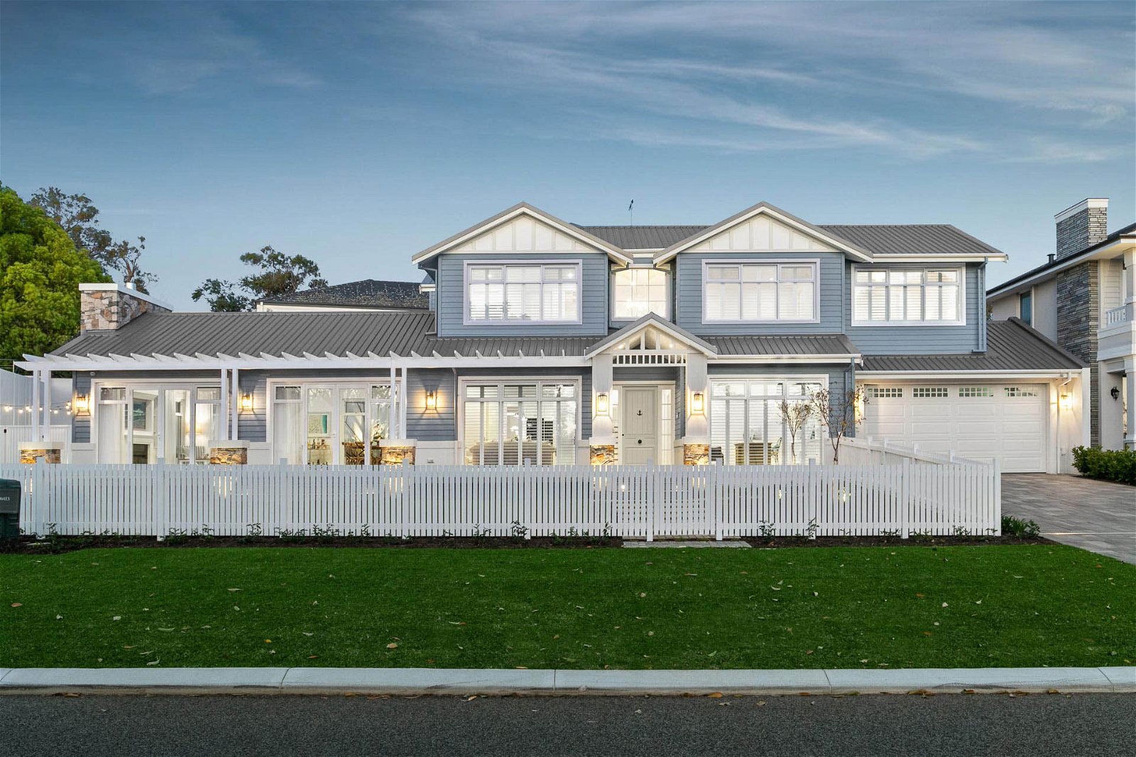 Bringing an elegant slice of beachside Hamptons to the leafy suburbs of Dalkeith, this two-storey custom homes’ blue facade stands out in the street for all the right reasons. Oozing the white picket fence dream, this luxury residence heroes everything that makes Hamptons styled homes hum.