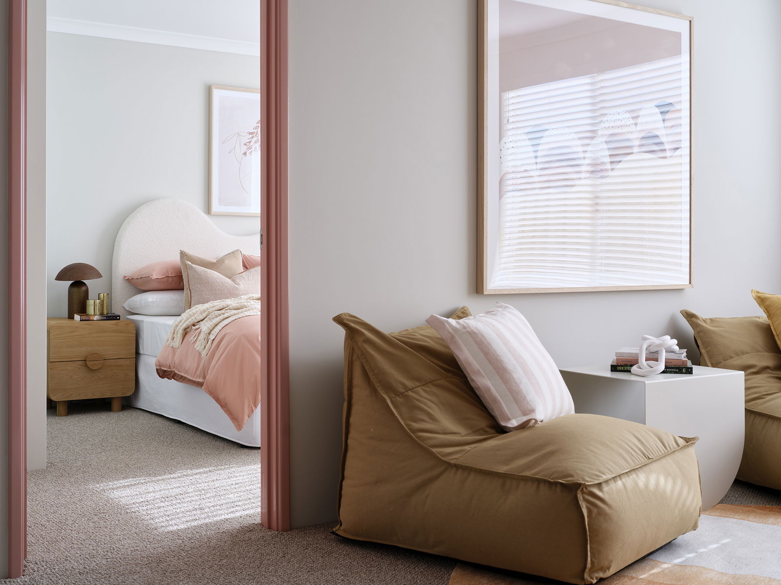 The Coral Cove offers a well-balanced blend of modern design and practical living spaces. Its skillion roofline and raking ceilings contribute to its contemporary look, while the thoughtful layout ensures that the home is both functional and comfortable. The elevated portico enhances the home’s entrance, offering a significant and welcoming presence to all who arrive.