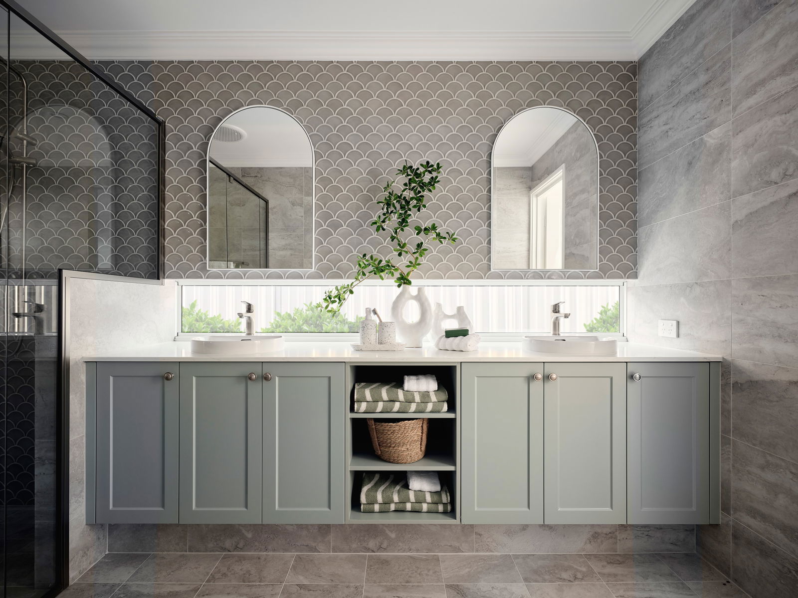 • 20mm solid composite surface benchtops to kitchen, ensuite, bathroom and laundry